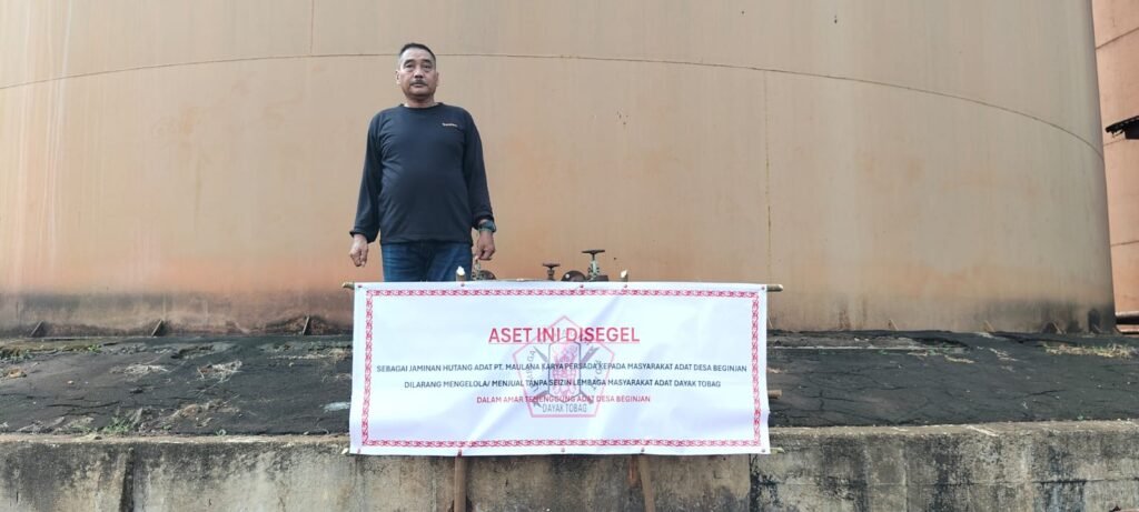 Diwilayah Benua adat Damang Ria Ketumenggungan Beginjan pada tanggal 25 Juli 2025, Tumenggung Adat Desa Beginjan melaksanakan pemasangan Baliho penahanan/penyegelan Aset PT.MKP sebagai jaminan hutang adat mandoh ke 2 yang belum terlunasi.